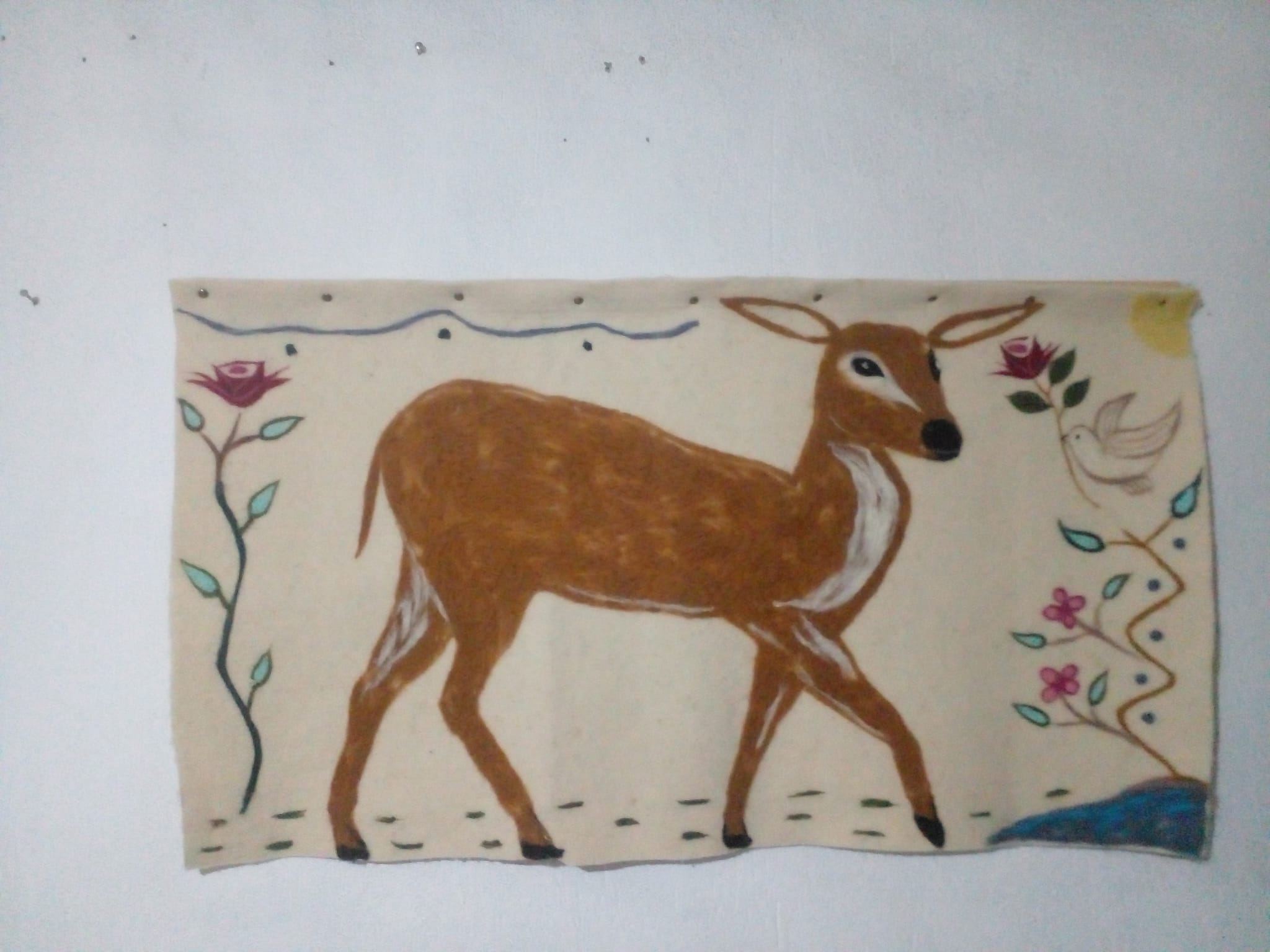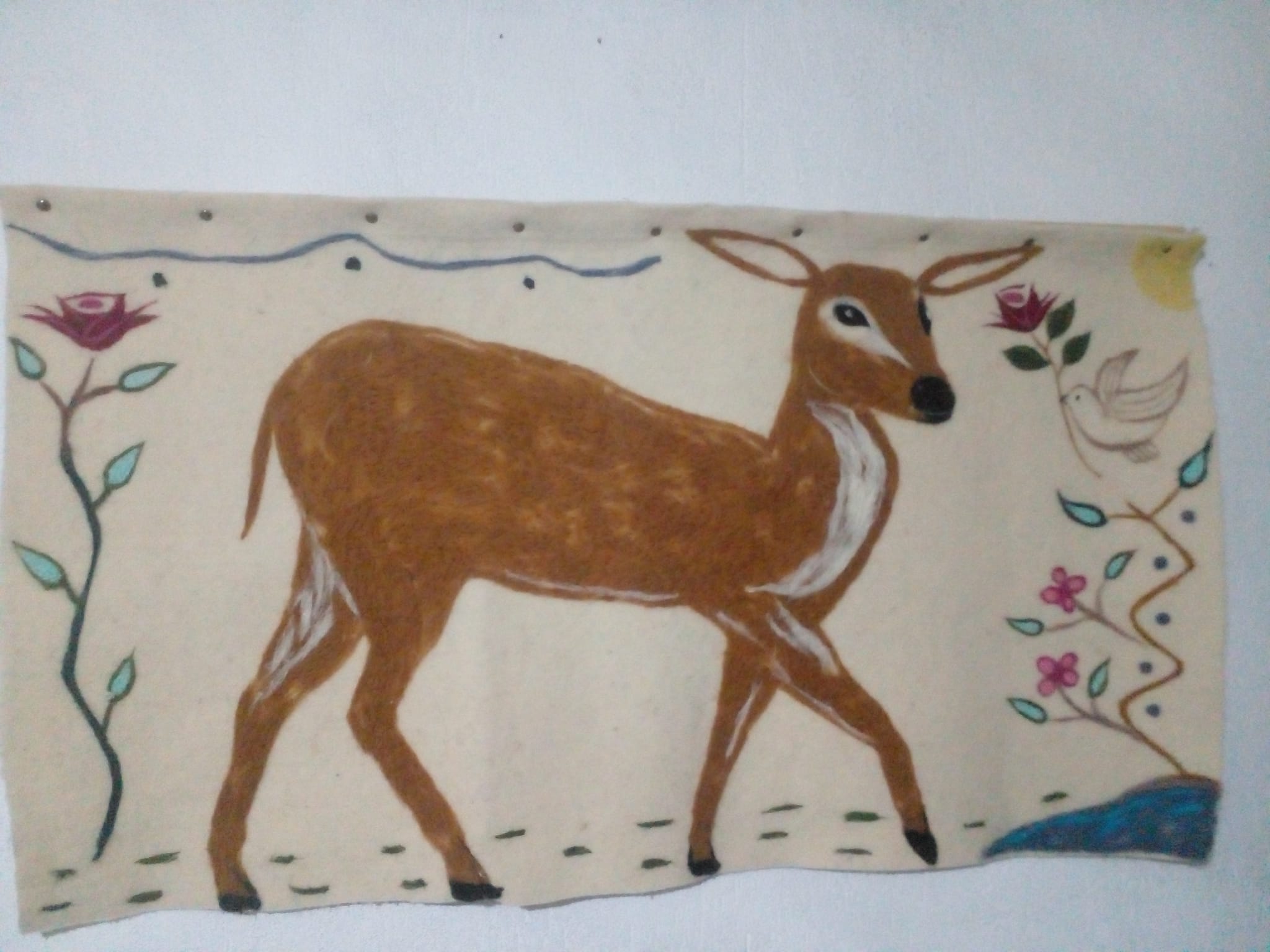 Doğal malzeme ve el işçiliği ile üretilen koyun yünü keçeden geyikli duvar halısı, evinize hem sıcaklık hem de estetik katıyor. Rustik ve bohem dekorasyonlar için ideal!