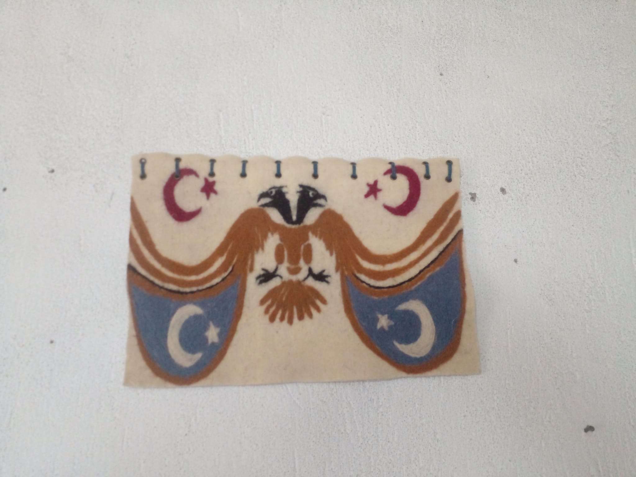 Koyun yünü ile keçe iğneleme yöntemi ile yapılmıştır.