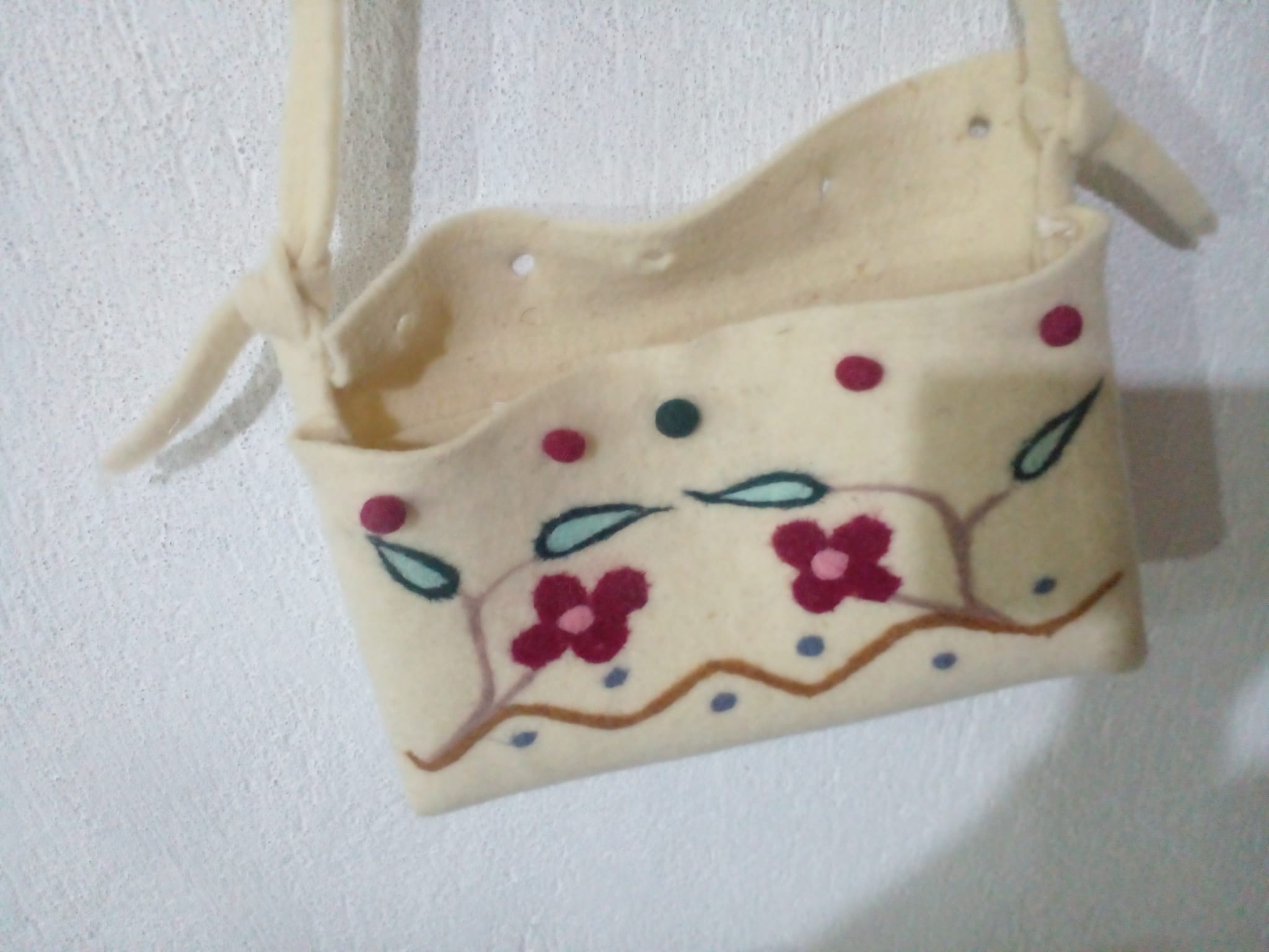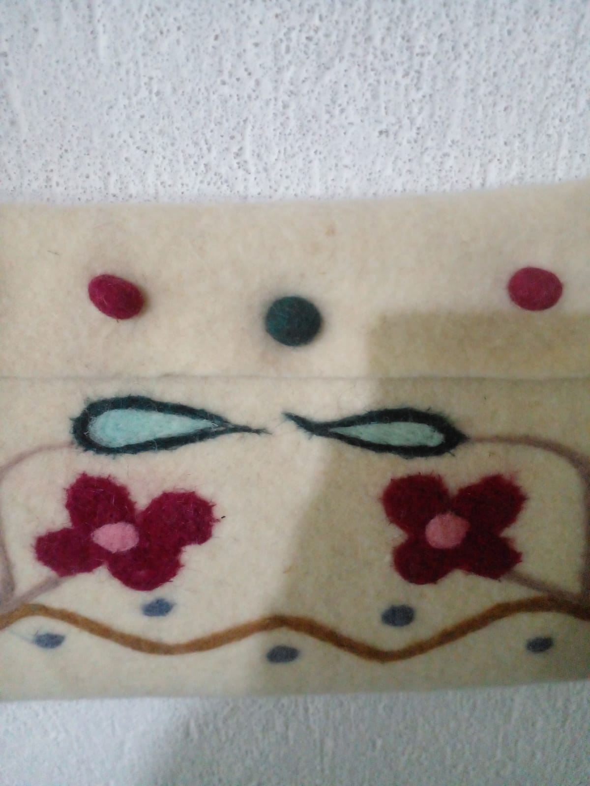 Keçe iğneleme yöntemi ile motiflenmiştir.