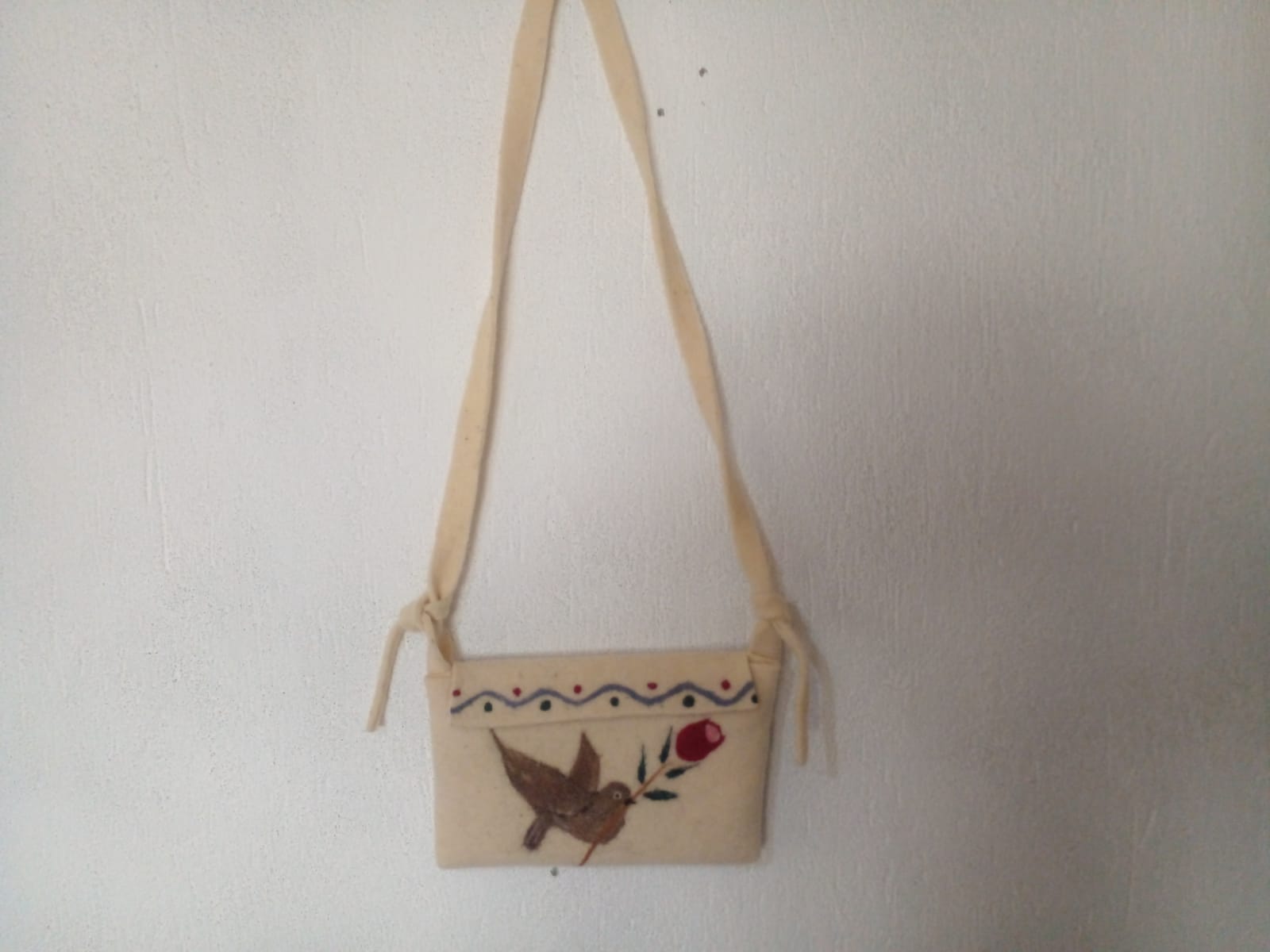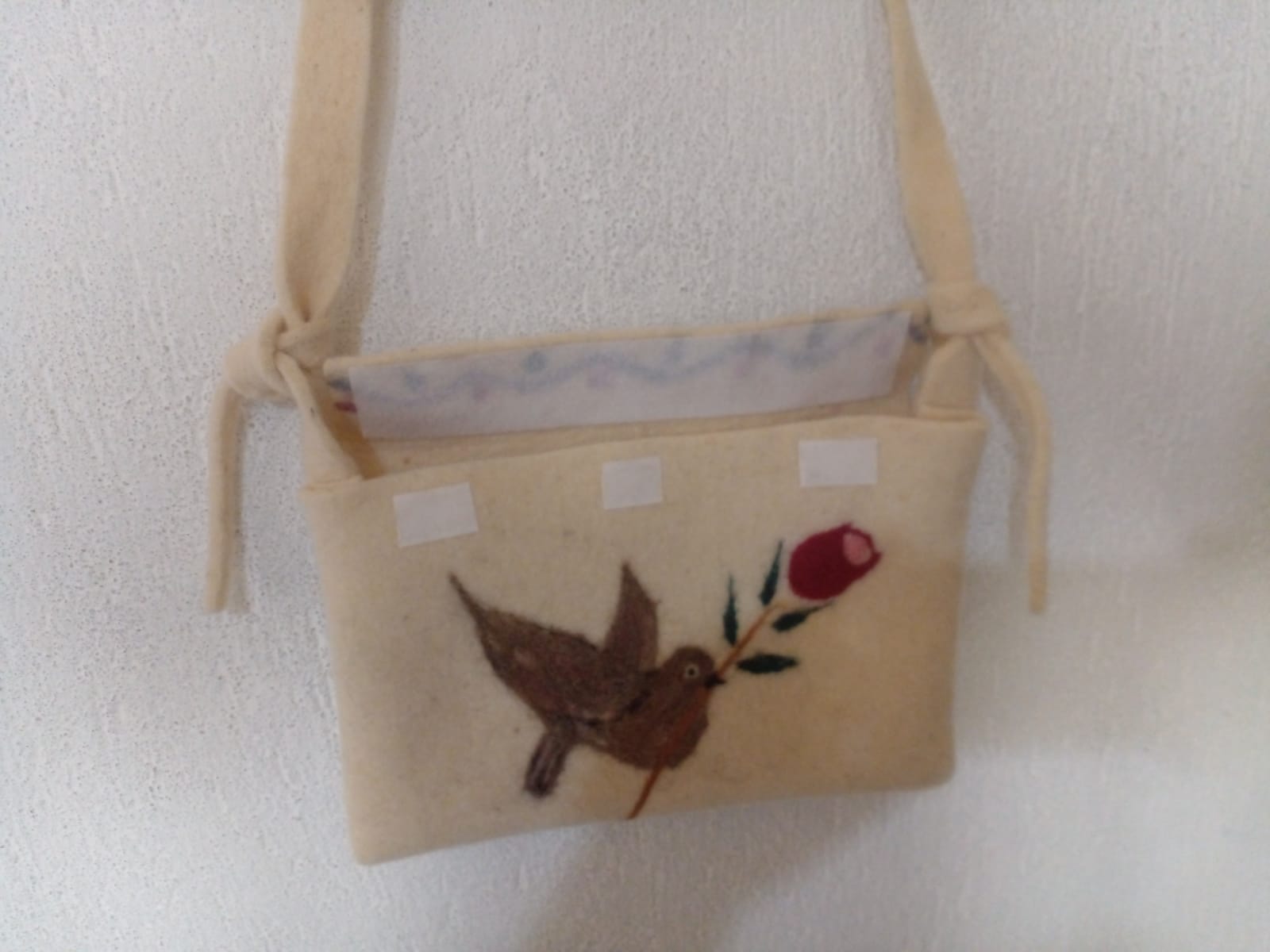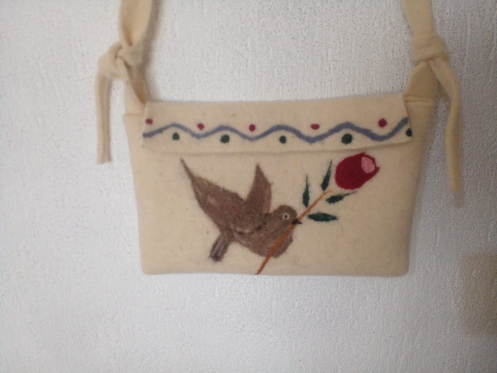 Keçe iğneleme yöntemi ile motiflenmiştir.