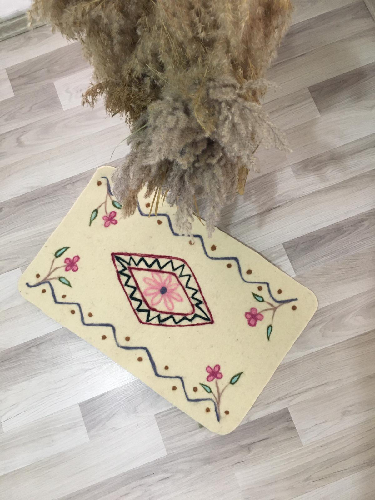 %100 Doğal Yün Keçe Paspas – El Yapımı, Sıcak ve Şık Dokunuş